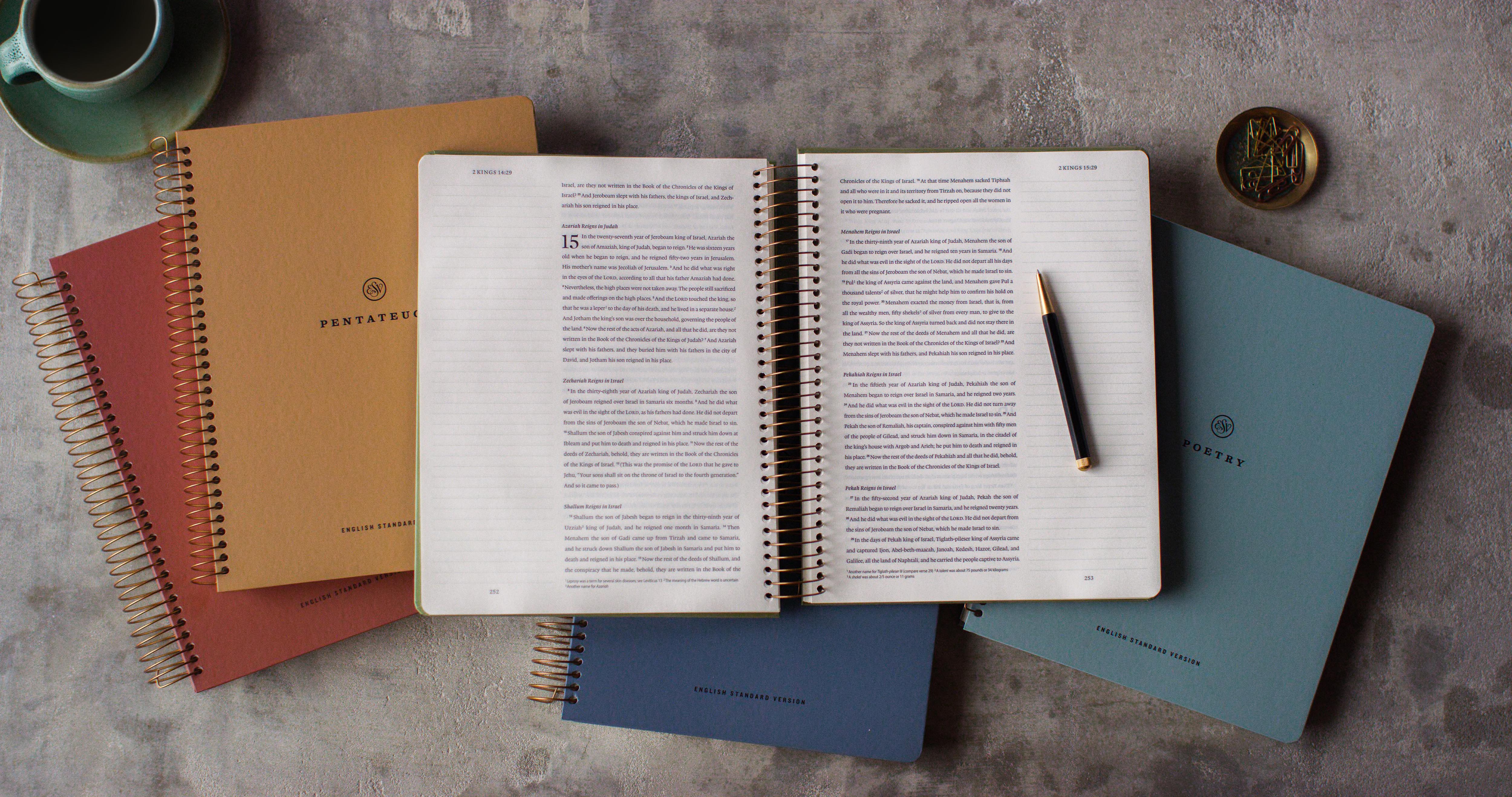 “The ESV Spiral-Bound Journaling Bible is an engaging tool for those who love to study the Bible with pen in hand. This high-quality journal provides spacious margins to record biblical insights that you will reference again and again.”